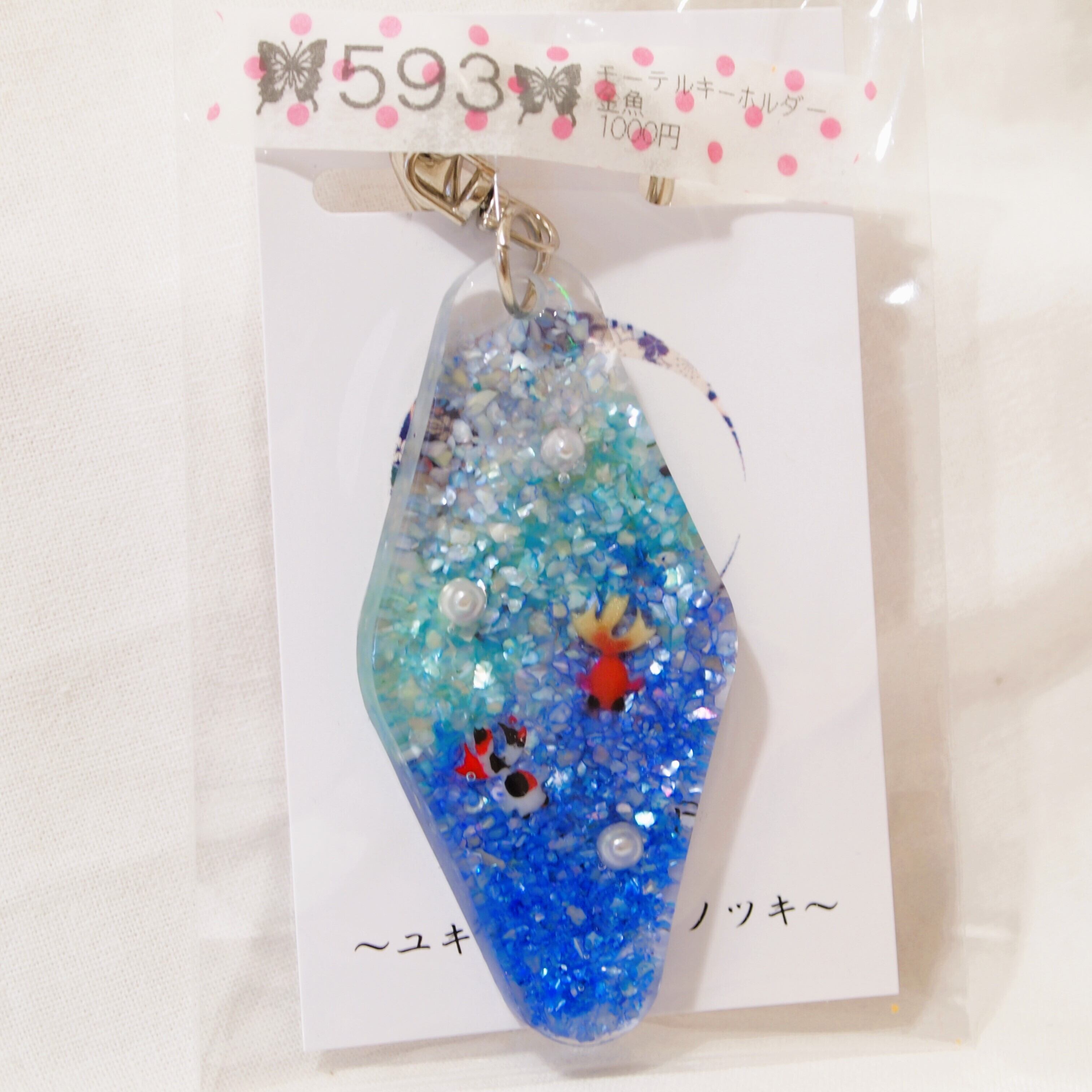 ブルーカラーのシェールを敷き詰めたひし形トップに、金魚が泳ぐデザインです。